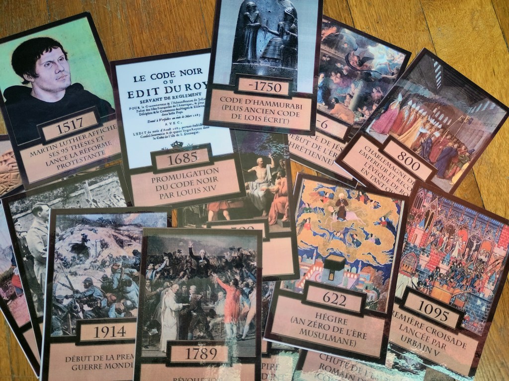 Pour l’ensemble des Timelines que j’ai bricolé pour des animations thématiques : une série de dates pour servir de repères généraux sur les grandes périodes historiques. A utiliser a priori avec des groupes qui ont du mal à situer les successions des grandes époques, ou pour jouer avec des variantes de type Timeline Challenges.
