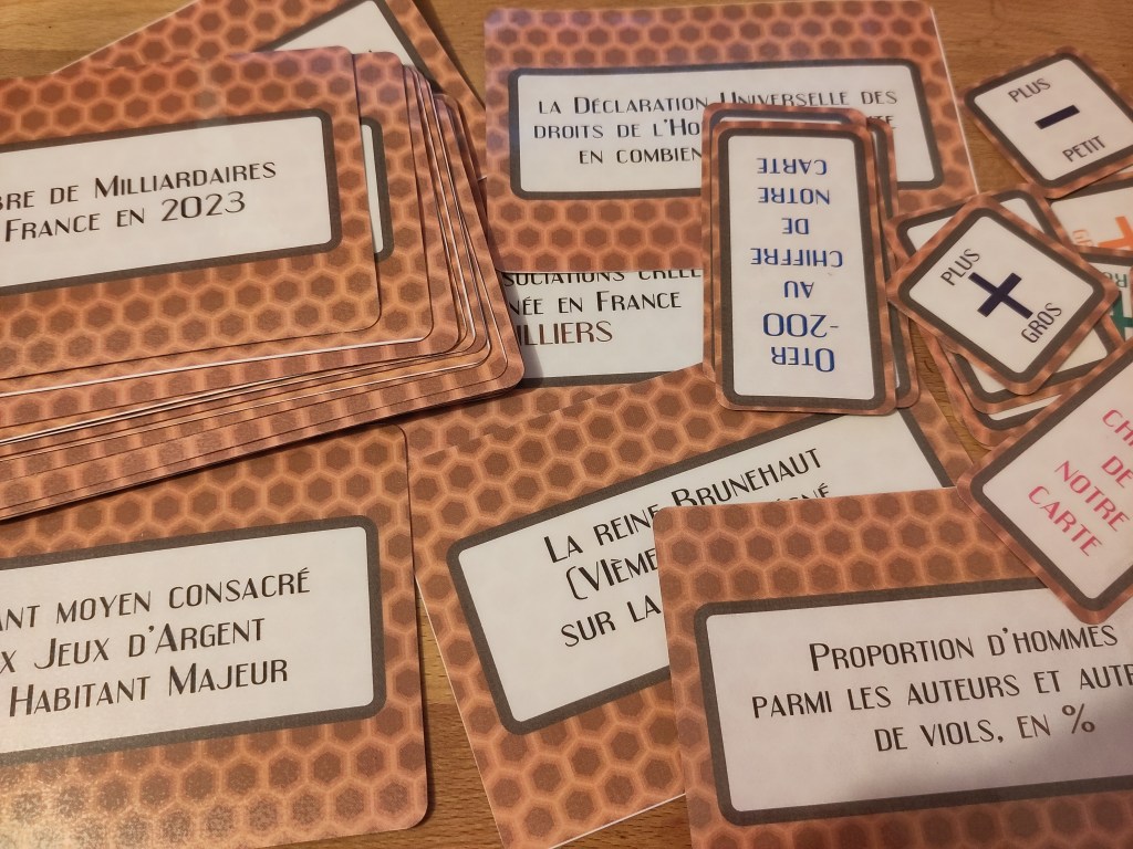 Une série de cartes sur des thèmes divers et variés, pour l’intérêt de ces chiffres, mais aussi pour montrer l’usage de cette règle de jeu. Fourni aussi avec les pions pour jouer à une variante de Zéro à 100.