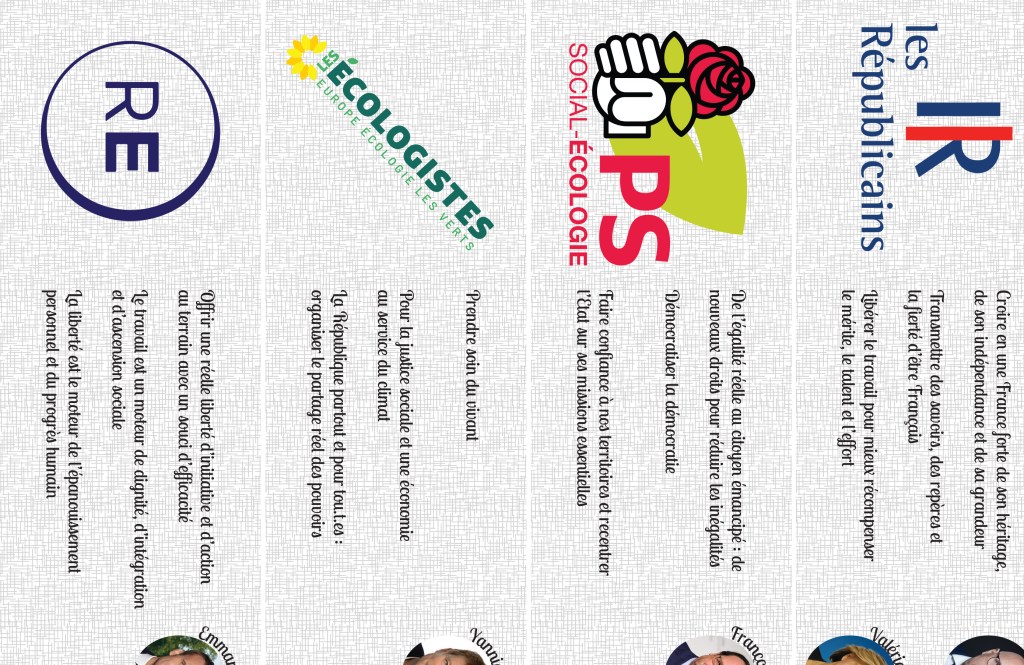 Une petite adaptation maline, sur une idée de Julien (merci !) : les partis politiques à positionner mais avec une face neutre, présentant uniquement les éléments de programme. Bien plus efficace pour que les participant-es se concentrent sur les contenus et pas sur leurs représentations des partis.